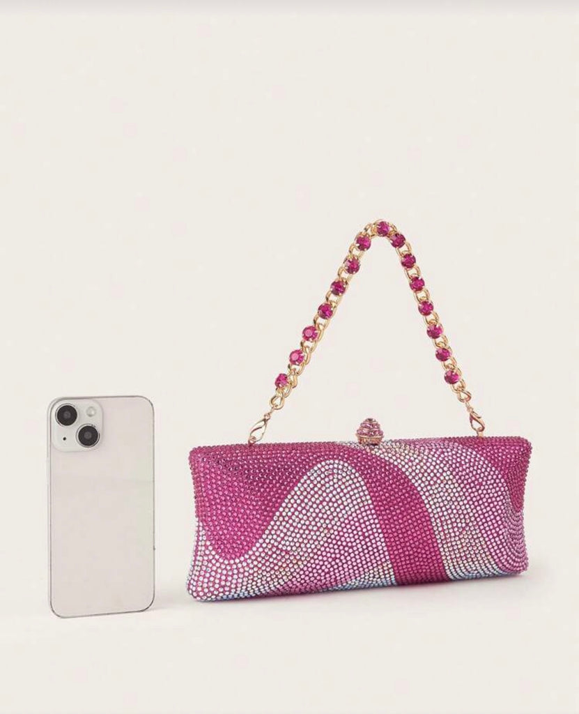 SHEIN SXY Pink Pattern Rhinestone Decor Clutch Bag