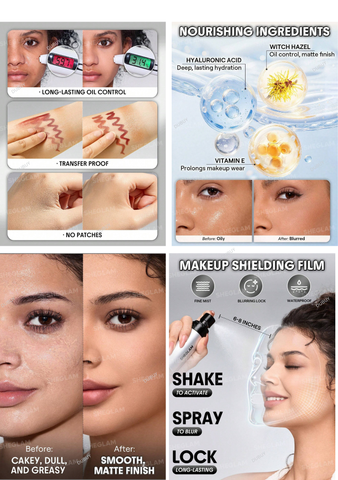 Our Camera On Blurring Waterproof Setting Spray locks in your look with waterproof, sweatproof, and smudge-resistant wear that doesn't weigh skin down. The ultra-light mist helps makeup stay smooth, fresh, and flawless across workouts, travel days, and everything in between! Wherever the day takes you, your makeup will stay blurred, locked, and camera-ready.
