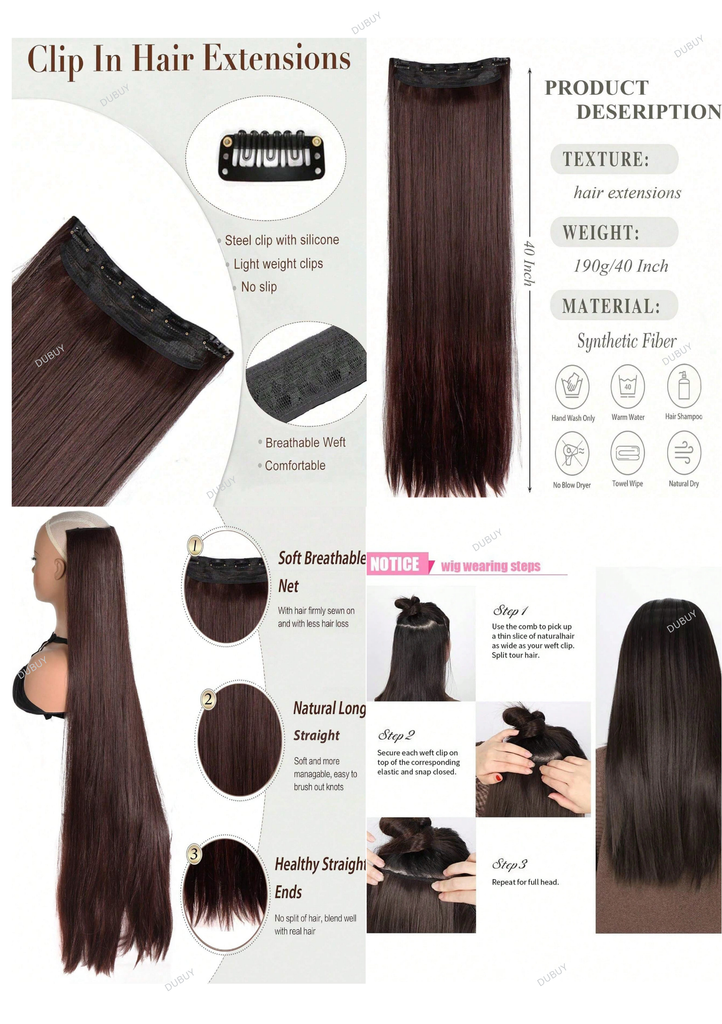Made with high temperature fiber this straight hair extension set delivers a soft sleek look while maintaining durability. The clip in design allows quick application and secure hold without damaging natural hair.