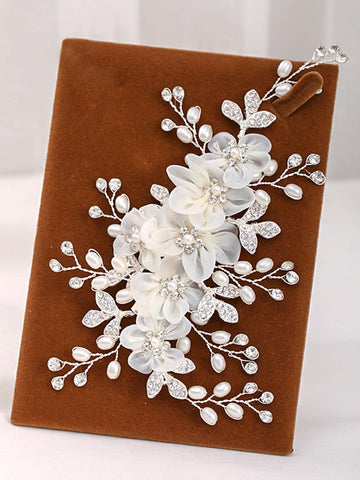 Add a touch of elegance and charm to your bridal hairstyle with the Bride Wedding Floral Gold Thread Hair Comb Accessory. Designed with intricate flowers and pearls, this boho-style hair clip offers a sophisticated and radiant look for weddings, parties, and special occasions. The silver finish complements any hairstyle, adding sparkle and grace effortlessly.