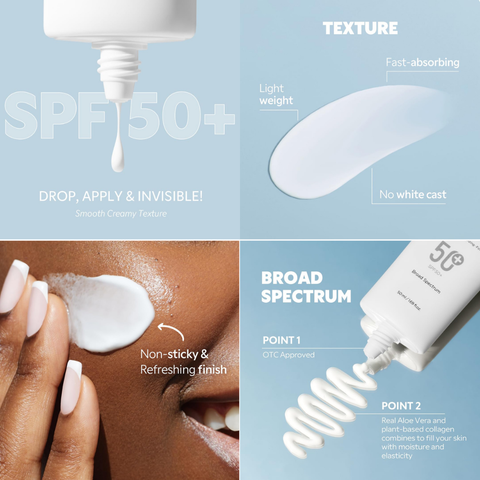 Powered by booster ingredients like three types of Hyaluronic Acid, Phyto-Collagen, and Aloe Vera, this lightweight sunscreen hydrates and nourishes the skin while maintaining elasticity. Its quick-absorbing, non-greasy formula ensures your skin stays protected, refreshed, and shine-free throughout the day.